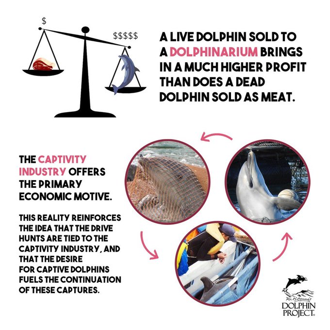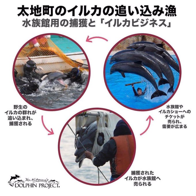 水族館用として65頭を生け捕るために、その家族500頭が殺されてきました。この他、母なしでは生きられない乳飲み子や幼児たちを沖で棄てる(これもリリースと呼ばれます)という隠された犠牲(ほぼ確実な死)もあります。