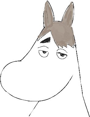 正解がわからないけど今やるべきことではないのはわかる。耳まで塗るべきか否か....ムーミンの形は拾ってきた奴