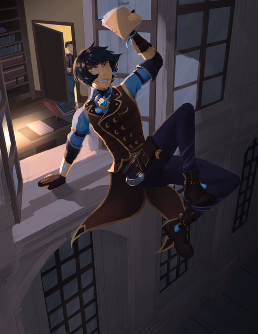 @laura_stahl I've like, 6 ocs? But here's my fave, Cameron Monet, a phantom thief from Fontaine, currently on the run for (unintentional) murder of a noble.