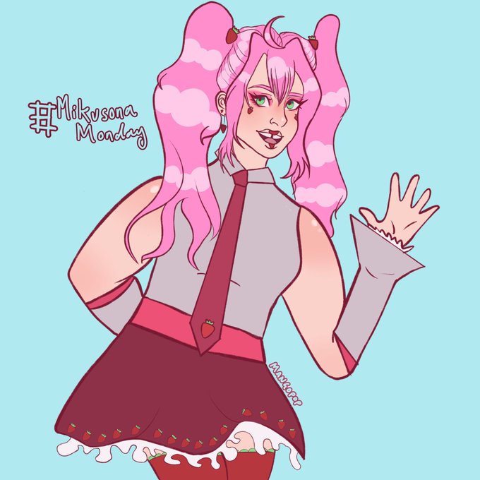 Here’s a strawberry Miku for !! Ive been rting some LOVELY mikusonas on my main so pls pls pls check those out and support the poc that are carrying the tag!! <3