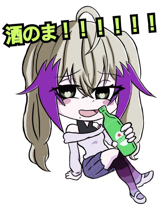 メメスガキ メメの小さい頃のすがた……ではなく、労働につかれたメメが幼児退行したすがた。瓶ビールはラッパ飲みが基本スタイルだ‼️