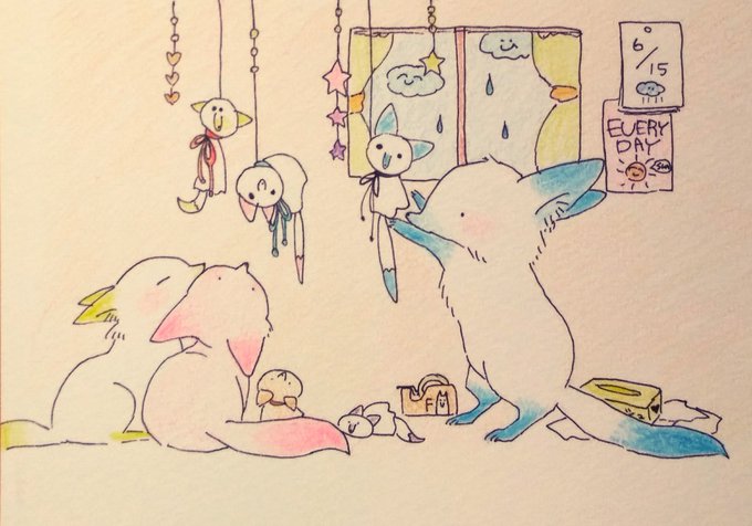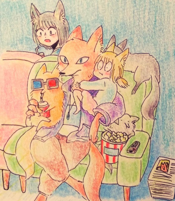 きつねの兄弟 たぶんアクション映画かなんか見てます(*´˘`*) #絵描きさんと繋がりたい
