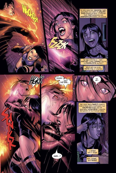 Not only because it’s such a great moment between Betsy and Logan we get to see Betsy really cutting loose in a fight. It’d be so fun to get more side missions away from the X-Men for her. (2/3)