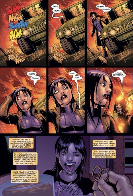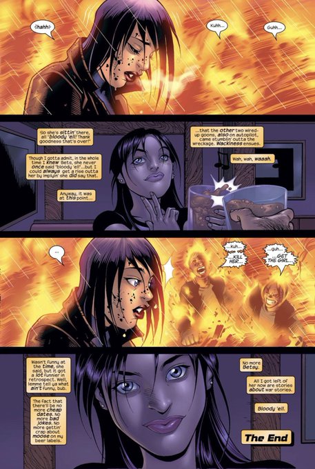 “Bloody ‘Ell” by Adam Warren and Rick Mays is a story where Logan recalls a time when he and Betsy were hanging out. This was not long after her death at the hands of Vargas in Xtreme X-Men. Its one of my favorite Betsy/Logan stories to date. (1/3)