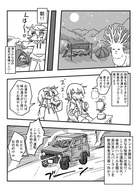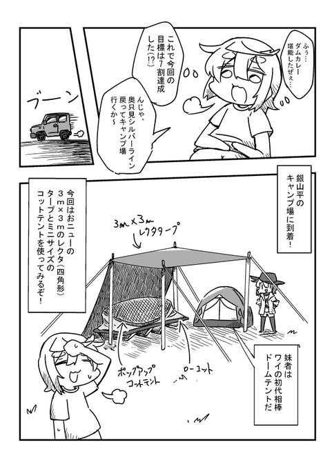 1か月以上掛かっちゃったけど、妹者と共にジムニーで秘境を巡るキャンプに行ったレポ漫画ができたぞい! 良かったら見てね!(1/6)
