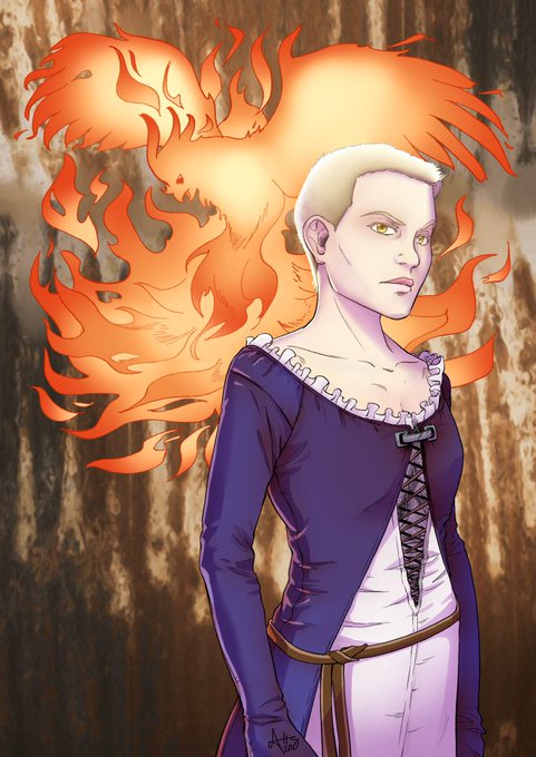 OC commissions! The scrappy girl and the man bound in leather are @N_trophy's, and the blonde princess belongs to @/aldarathomas_writes on IG