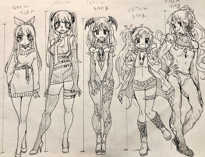 そろそろ体型と向き合わなければならない時がきた 一番右は男です、変態です。 ちゃんと体型を区別して描けるようになりたい、ぼてーんとしたのから非人間的なのまで…