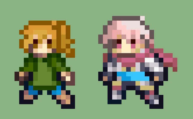 @BcnParadise 's ocs Eleanor and Zephyr in the Three Houses sprite style