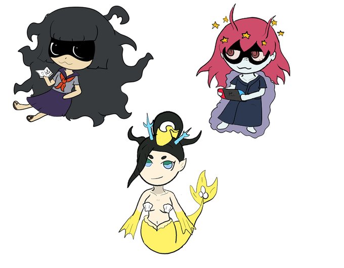 Dibujos de Malena, Cafeíno y Sirenia usando una técnica distinta a la usual xD