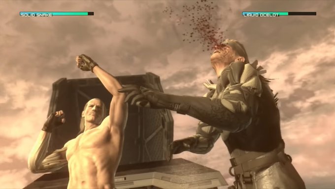 Fighting atop a now defunct Arsenal Gear, Snake does battle with Liquid one final time. The two trade blow after murderous blow, as Ocelot slowly regains his presence throughout the fight. This battle is the most cinematic and interactive in the saga.