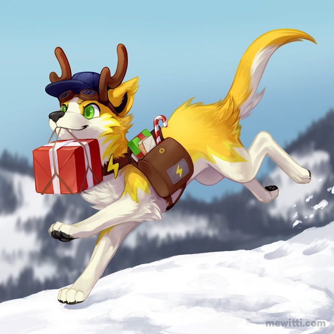 Super cute Christmas commission! Peaseblossom the zippy fast delivery doggo belongs to @zaiawurf