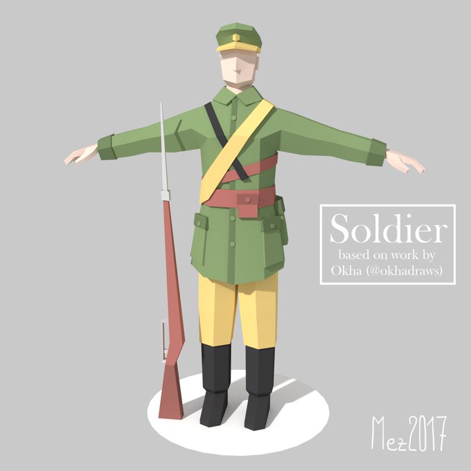 And here is the stream result: a soldier based on the drawing by @okhadraws #b3d #lowpoly