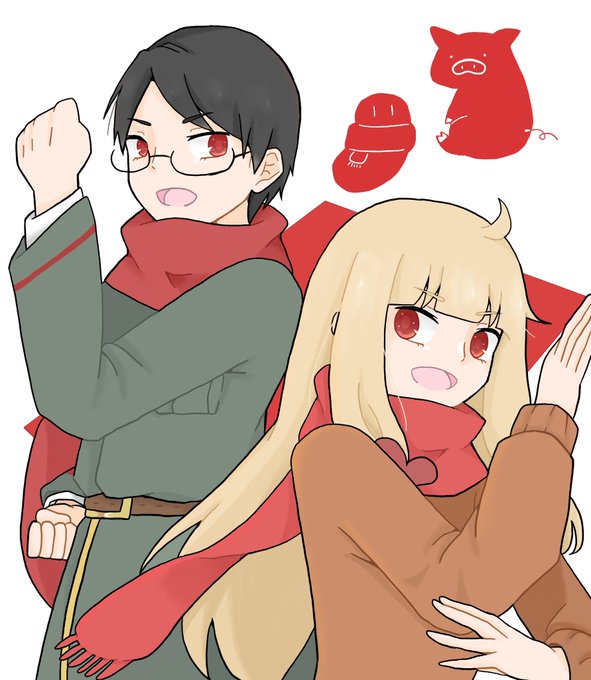 赤色で赤マフラーの二人。 #wrwrdFA #たらちゃんの梅ねり