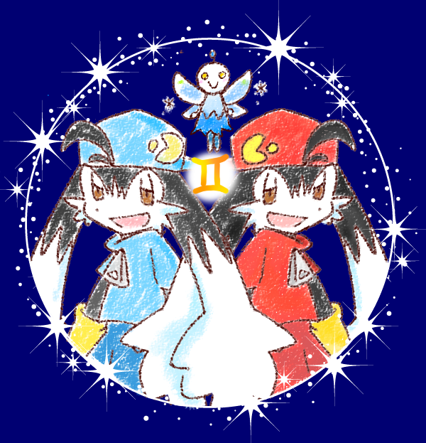 ちなみに自分は「ふたご座」と「かに座」をかかせて頂きました!! 初期クロノアが多かったのでWiiとヒーローズで調整 かに座は特に色々悩んだけど、ジャグポットの兵士に気が付いた自分をほめたい(自画自賛)Wiiクロノアだったので兵士の手もWiiによせました。手がそう見えないのは、画力の問題です