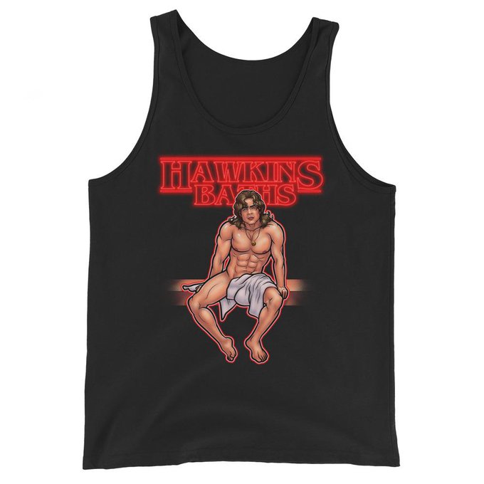 Stranger Things' hot mess Billy is the subject of my new design, "Hawkins Baths," now available on Lucky Pierre. Check him out at: