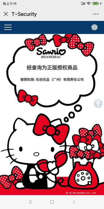 版权授权的验证图,全部都是HelloKitty