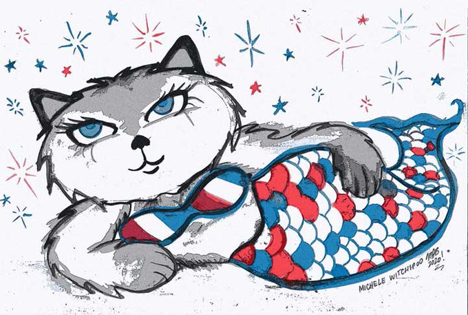 This Saturday, it's both #Caturday and the #fourthofjuly #fourthofjuly2020 What better way to start the weekend than to post art of my cat. Here's Netzach Wondercat, aka Nettie, as a patriotic cat mermaid. #cats