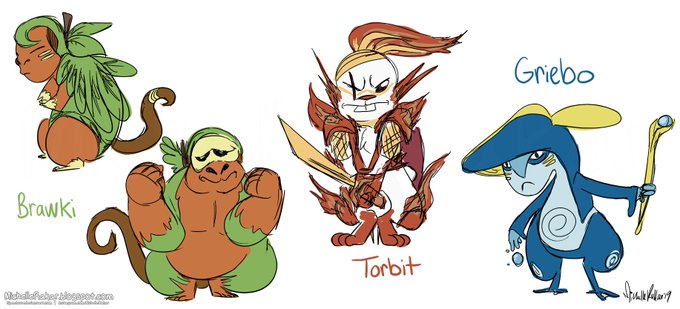 Since there's gonna be some Pokemon announcements tomorrow, I figured I would doodle some Gen 8 starter evolution predictions before it's too late. I'm guessing they're gonna be class-themed to go along with the Sword/Shield fantasy theme.