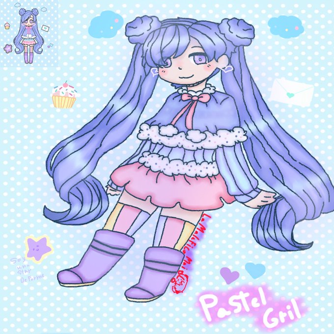 #pastelgirlchallenge POR FIN TERMINO ESTO (dure muco con esto,borre muchos dibujos y el pelo por que no me salia como quería) la creadora @AruOwlsArts me encanto mucho hacerlo > w < se veía tan lindo uwu @laurahstar14 por hacerme esta niña de los pasteles XD
