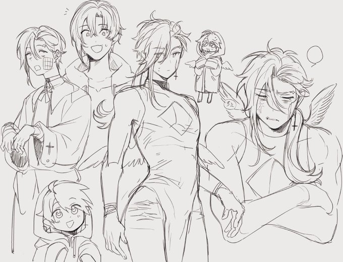 Lovi the incubus with a broken heart (his wings never developed properly and are wrapped around his heart) Doodles on the left were done by Xankiru
