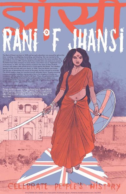 The Rani of Jhansi was born in 1828. Her early education was unusual for girls at the time: wrestling, swordfighting, horseriding, shooting. A fierce rebel, she presaged the Indian independence movement which let to the fall of the British Raj in 1947.