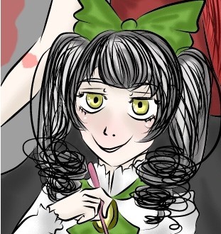 Ruri a sus cosas. Tomando la fea costumbre de su padre de ser dibujada en otro estilo.