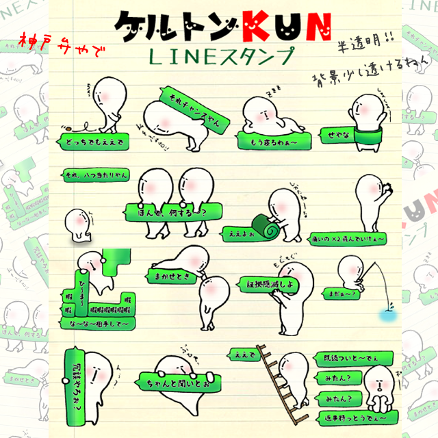 神戸弁のケルトン君!日常生活で使って貰いやすいです!老若男女問わず使って貰えます!!!半透明で少し背景が透けるのがポイントです