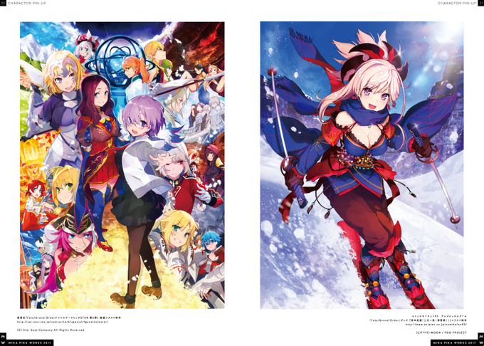 冬コミ新刊「MIKA PIKA WORKS」&「双子綴リ」の再版委託が始まりました。また夏コミ既刊の「Fate/Grand Memories」も増刷いたしましたので、この機会にどうぞよろしくお願いします!沢山イラストが入ってるよ〜!