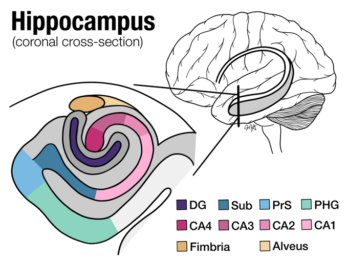 A colourful little illustration of the #hippocampus that I put together in early June to accompany a brilliant friend's research 🧠🤓🔬