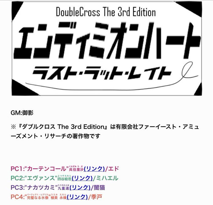 エンディミオンハート・ラストラットレイトのログが……できました https://t.co/tc4wE7FVfK