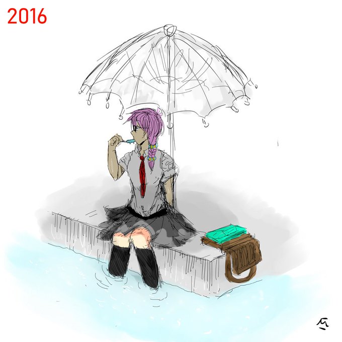 A re-draw of an old doodle I made back in 2016! Excuse my poor background-making skills σ(≧ε≦o) 💮 ♨️