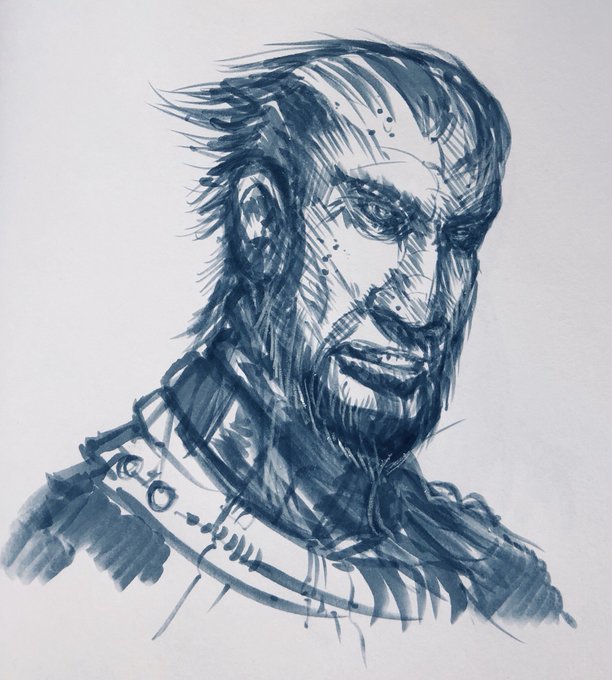 307/365 #ink #brushpen #sketch #sketchy #character #portrait #rough #roughsketch #sketchbook #sketches #headshot #fantasyart #scifiart #conceptart #mikephillipsart