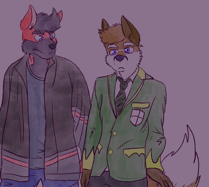 From earlier. Still experimenting with my style. Here’s the goofballs @RioichiKarihazi and @itsdablazewolf /@imawolfcat