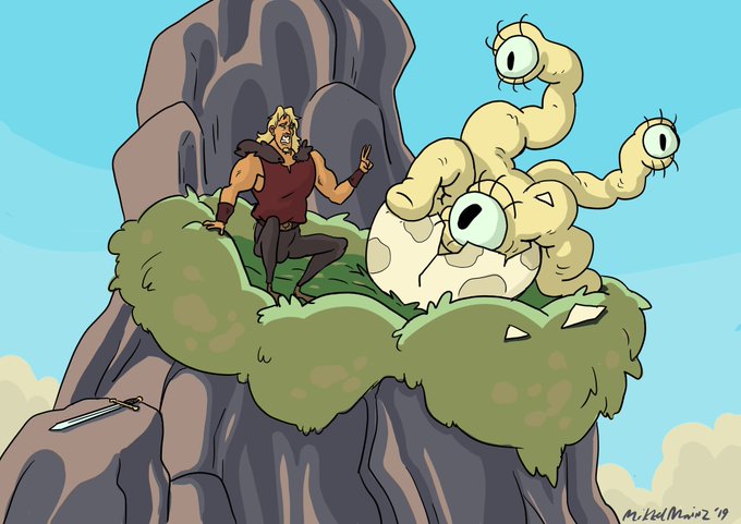 #Alethrionchallenge day 13: Traveling Montage. Bruhn looks for dragon eggs but he finds beholder hatching instead. Then he accidentally drops his sword.