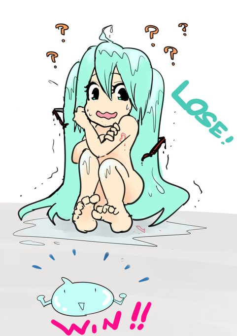 転生したらスライムに敗北して服を溶かされたミクさんを描きましたッ。