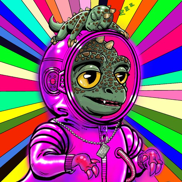 I’ve been wanting a @SpacePunksClub Dino with the sleeping dino trait for ever! Mission accomplished! Absolutely amazing colors on this one!