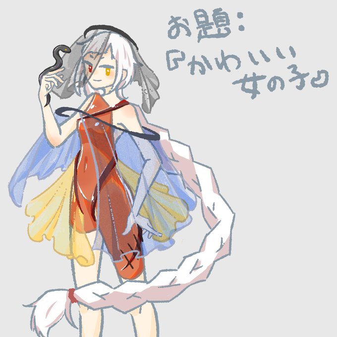 瞳孔を左右変えるかとても悩んだもののどっちをどっちにするかが一向に決まらなかったので諦めましたぁ……!! あと後ろ髪に一筋黒メッシュを入れたかったものの三つ編みの構造がわからん過ぎてこちらも諦め……! 技術力!!!
