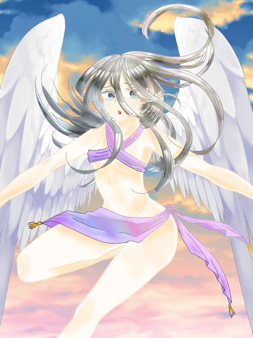 人間に呆れてる天使 線画色変えない方が可愛いかなぁ……? 髪の毛塗るのむずい🥺