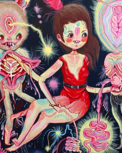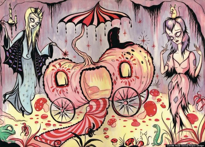 El universo gótico de Camille Rose Garcia presenta atmósferas inquietantes en donde destacan sus trazos distintivos y originales. 🌑🥀♣️