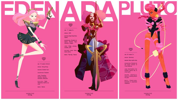 Estas ilustraciones llenas de magical power son parte de un book llamado Violent Pink del artista de Eastwood Wong