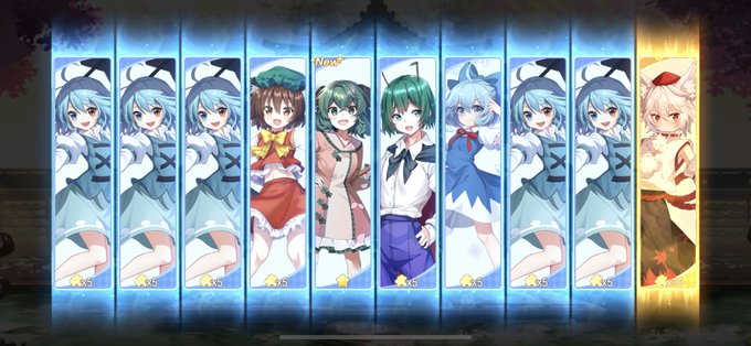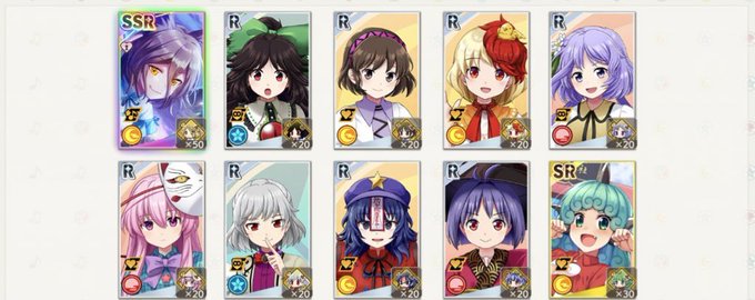 おやすみなさい! 東方ソシャゲ(ダンカグ、アルレコ、ロスワ)の10連の引きを比べてみたけと一目瞭然でアルレコだけダントツで悪いなw