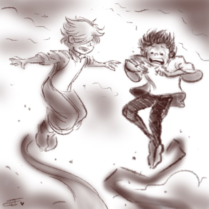 Young Olruggio and Qifrey practice water magic together, to help Qifrey embrace his fear 💙 I love Witch Hat Atelier!! #witchhatatelier #fanart #witchtober