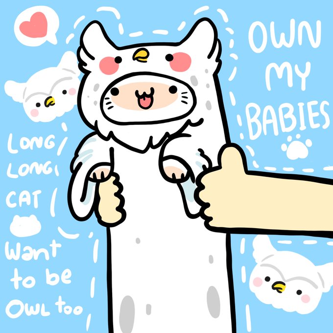 Long long cat want to be baby owl too ! long long cat want to be snow owlll~~