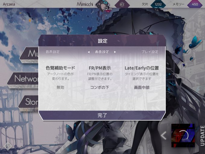 @pom__010 設定で表示するかどうかとどこに表示するか変えれるよ、ワイはコンボの下、プレイ画面に小さい点が二つあるけど青がPM表示、紫がFR表示