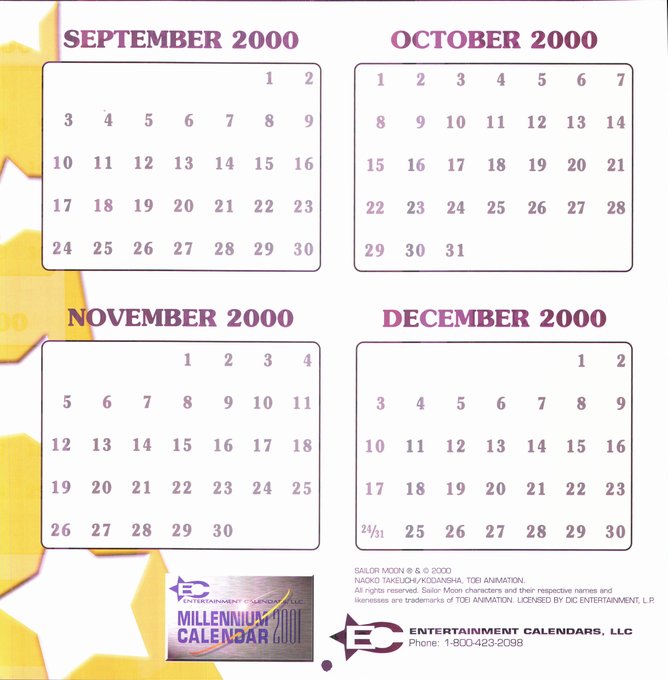 The 2001 Sailor Moon Calendar starts off strong with Sailor Venus