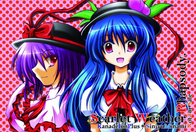夕日をバックに『撮りますよー!』的な。数年振りに緋想天の天子と衣玖さん描きました。書き下ろしです。