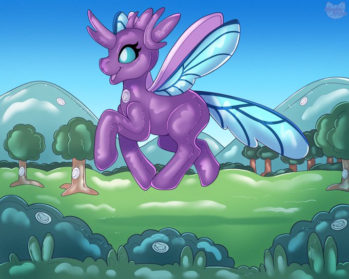 Something very different from usual! A big pooltoy pony character floating in a pooltoy world. For LtColonelWhipper ( https://t.co/oYse1Js65D )