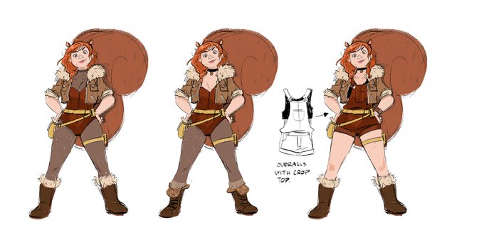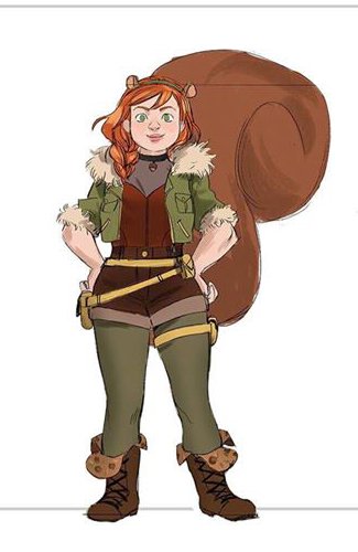 Next up, Squirrel girl! Some options, and eventually, the turn I sent. Some unknown genius swung her color green to keep it from going too monotone so the final version we incorporated that idea!