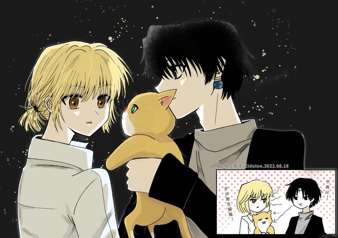 涂鸦了屏保的由来😂 库洛洛:快叫妈咪。 大橘:喵~ 酷拉:这只大橘怎么看都是被绑来的……可恶的盗贼,连猫猫也不放过💢