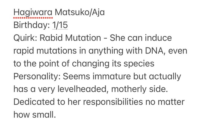#mhaoc #MyHeroAcademia Some fun facts, Matsuko’s quirk theoretically works on humans and animals but she refuses to try on principle. So she exclusively uses plants to fight. Chiyo (who is a Izuocha fan-child btw) knows Gunhead Martial Arts thanks to Ochako.